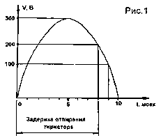 Может показаться, что гасящий резистор должен иметь гораздо большую мощность. Однако ток протекает через него лишь при включении в течение примерно 0,5 с и до момента открывания тиристора (заштрихованная область на рис.3). Поэтому задержка отпирания тиристора не должна быть более 1 мс.
