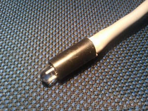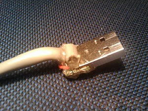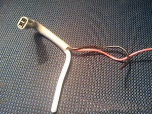 С одной стороны провода припаиваем светодиод (припаиваем в цепь резистор)