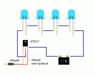 Если все правильно, проверьте работу схемы, подключив аудио штекер к выходу вашего аудиоустройства, отрегулировав громкость на необходимую чувствительность