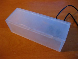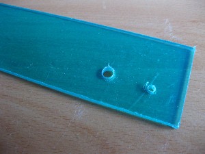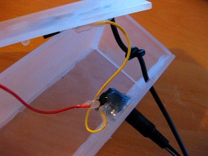 В одной из пластин, которая будет задней стенкой короба цветомузыки, просверлите 2 отверстия.